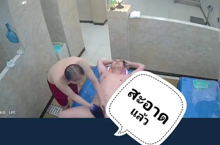 ไม่ทราบแน่ชัดว่าเป็นบริการเสริมหรือฟรีหลังจากคุณผู้ชายได้เข้าไปอาบน้ำในโรงยิม เน้นว่าไม่ใช่ซาวน่านะครับ เพราะดูจากภาพมีคุณลุงได้ให้บริการขัดเช็ดบริเวณช่วงล่าง ด้วยผ้าขนหนู ดูแล้วก็ไม่เห็นจะมีอะไร ถูๆวนแค่จุดเล็กๆ