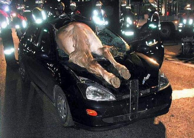 2. รถชนม้าที่กำลังวิ่ง ม้าทะลุกระจก เข้าไปในรถ, อุบัติเหตุทางถนนแบบนี้หายากจริงๆ