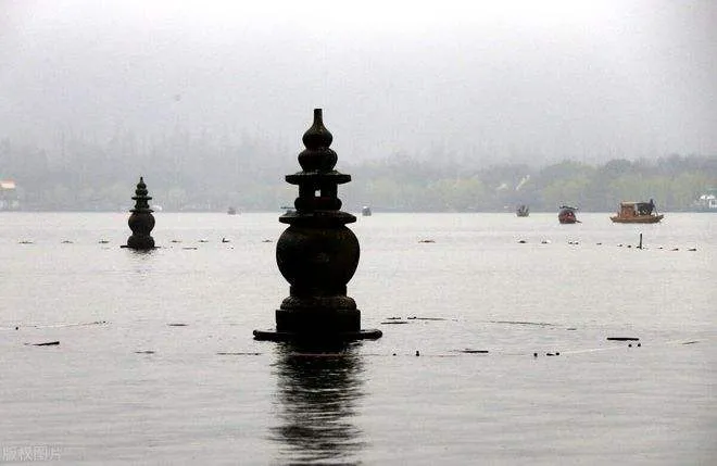 7. หางโจวสามสระสะท้อนดวงจันทร์ ระยะห่างระหว่างเสาหินทั้ง 3 แห่งคือ 62 เมตร