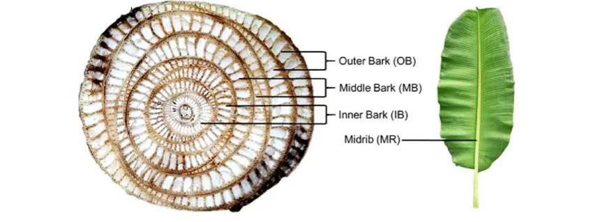 ฐานก้านใบแผ่ออกเป็นกาบ เป้น ลำต้นเทียม