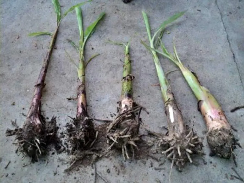 หัว หรือเหง้า ที่หัวมีตา ซึ่งจะเจริญ เป็นต้น เกิดหน่อ หลายหน่อเรียกว่า การแตกกอ หน่อที่เกิดหรือต้นที่เห็นอยู่เหนือดิน ความจริงแล้วมิใช่ลำต้น เราเรียกว่า ลำต้นเทียม ( ส่วนนี้เกิดจากการอัดกันแน่นของกาบใบที่เกิดจากจุดเจริญของลำต้นใต้ดิน กาบใบจะชูก้านใบและใบ และที่จุดเจริญนี้จะมีการเจริญเป็นดอกตามขึ้นมาหลังจากสิ้นสุด การเจริญของใบ ใบสุดท้ายก่อนการเกิดดอก เรียกว่า ใบธง นั่นเอง