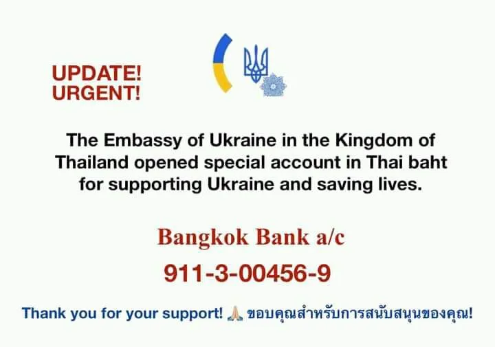Posted by Посольство України в Таїланді/Embassy of Ukraine in the Kingdom of Thailand on Thursday, March 17, 2022
