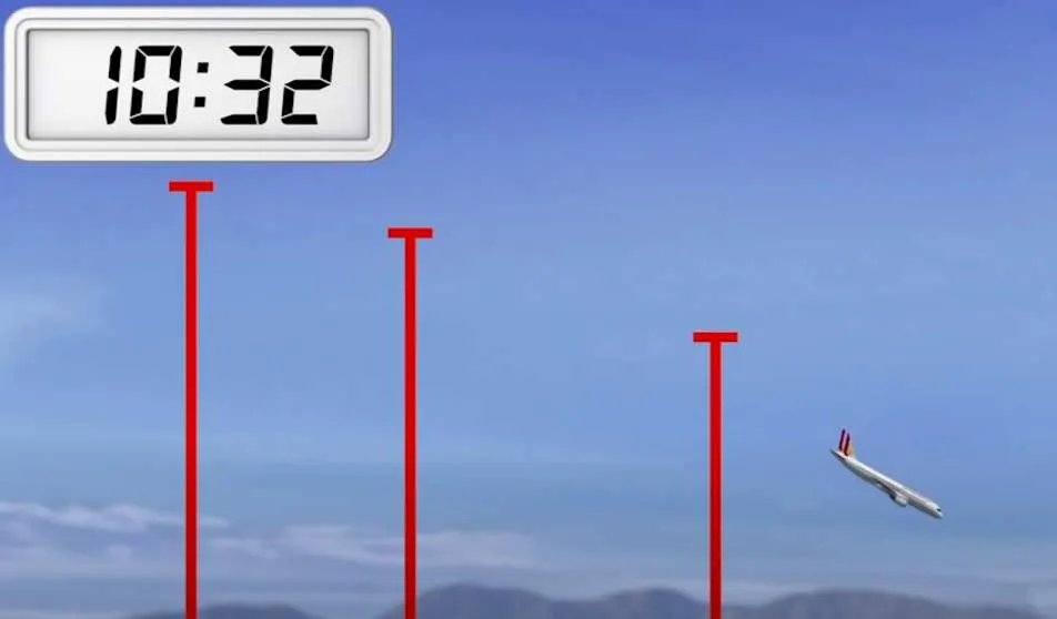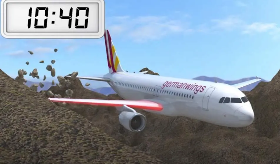 โดยเครื่องบินลดระดับลงอย่างรวดเร็ว จากความสูง 38,000 ฟุต ลงเหลือ 5,000 ฟุต ภายในระยะเวลาเพียง 8 นาที โดยไม่ทราบสาเหตุ จนกระทั่งเครื่องบินดิ่งลงชนเทือกเขาแอลป์สในที่สุด