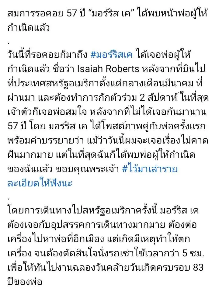 "มอริส เค"เจอพ่อแท้ๆ แล้ว