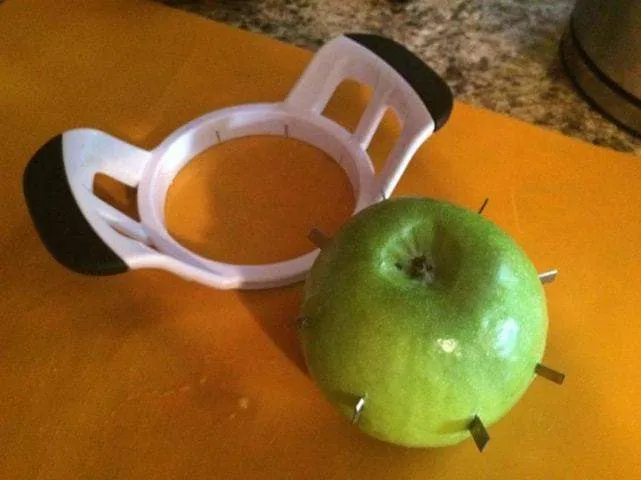 8. เชื่อว่าหลายคนเคยใช้เครื่องมือประหยัดแรงงาน เช่นเดียวกับภาพด้านล่าง, ฉันต้องการตัดแอปเปิ้ลแบบง่ายๆ แต่มีดติดอยู่ตรงแอปเปิ้ล