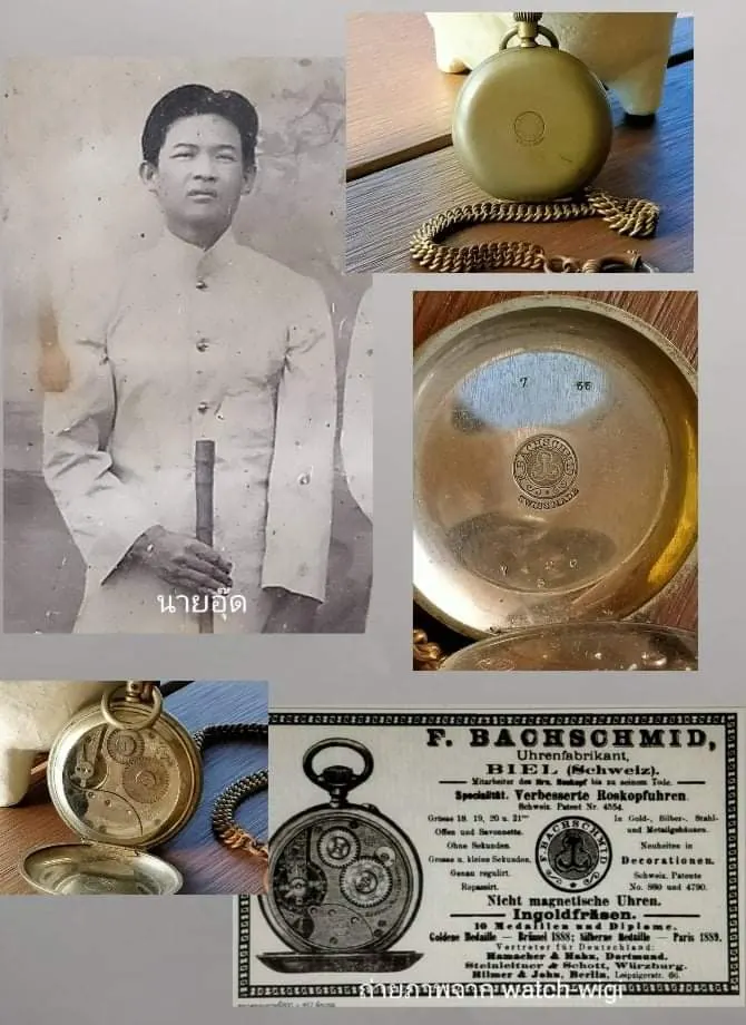 นาฬิกาพกเรือนนี้เป็นของก๋งอุ๊ด ประไพจิต ( บ้านครูโพธิ์ ตลาดหลักห้า ) เป็นแบบมีฝาปิดเปิด 2 ด้าน ด้านหน้าและด้านหลัง ด้านในฝามีหมายเลขเครื่อง มีสายสำหรับใช้คล้องกับกระดุมเสื้อราชปะแตนสมัยก่อน ซึ่งในสมัยนั้นเลขอาราบิก ยังถือได้ว่าเป็นเลขที่ ชาวสยามนั้น ยังไม่ค่อยจะคุ้นเคยสักเท่าไหร่ ครับผม