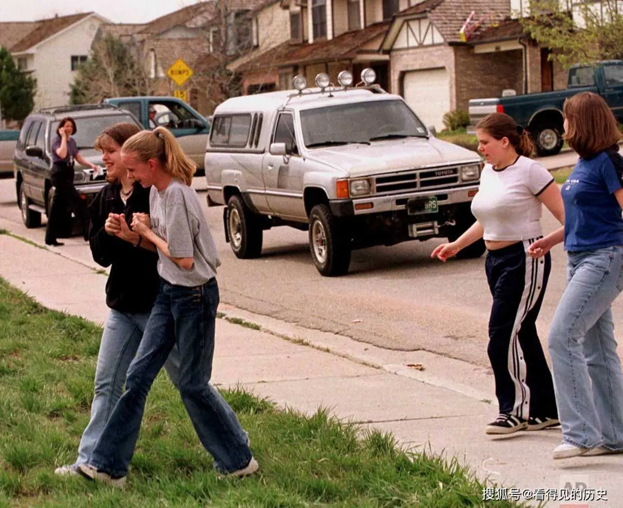 6. วันที่ 20 เมษายน 2542 หลังเหตุการณ์กราดยิง นักเรียนที่โรงเรียนมัธยมโคลัมไบน์ได้รับการอพยพ