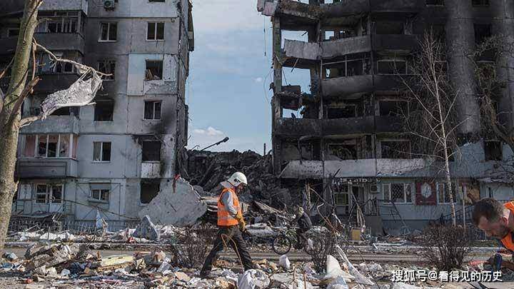 4. วันที่ 7 เมษายน หน่วยกู้ภัยเดินไปท่ามกลางซากปรักหักพังของอาคารที่กองทหารรัสเซียถูกทำลายในโบโรเดียนกา ภาพถ่ายโดย Reuters Marko Djurica