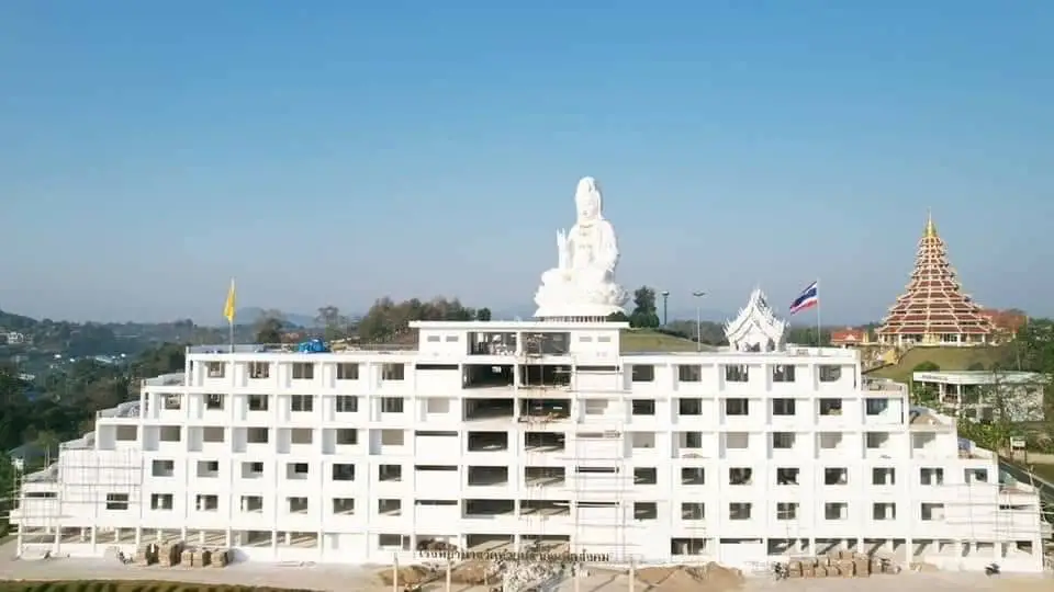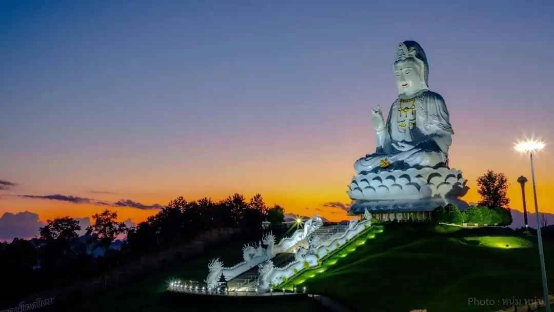 ถ่ายรายการหนูน้อยสุภาษิตสืบสานวัฒนธรรมไทยสู่สากล..กราบขอบพระคุณท่านเจ้าอาวาสวัดห้วยปลากั้งเชียงราย เจ้า..ที่เมตตา น้องมังกรพูดถึงพุทธเจ้าประวัติและแรงบันดาลใจในการสร้างวัดห้วยปลากั้ง ประวัติความเป็นมาท่านว่าครั้ง หนึ่งท่านทรงมีนิมิตฝันเห็นเจดีย์แห่งสรวงสวรรค์ ชั้นฟ้า.. สูง9ชั้นและโบสถ์ องค์พญานาค สีขาว และท่านก็ ยัง นิมิตร ถึงองค์พระโพธิสัตว์กวนอิมจึงสร้างองค์ เจ้าแม่ กวนอิมองค์ใหญ่ที่สุด สูง 7เมตรสูง26 ชั้น.. เพื่อให้กัลยาณมิตรทุกๆคนทั่วโลกมากราบสักการะบูชาความหมายของเจ้าแม่กวนอิมคือพระผู้มีแต่ให้การให้ ของพระโพธิสัตว์กวนอิมเป็นการให้ผู้ยิ่งใหญ่ซึ่งให้แก่ผู้ยากไร้ และ มีโครงการต่างๆที่ท่านสร้าง