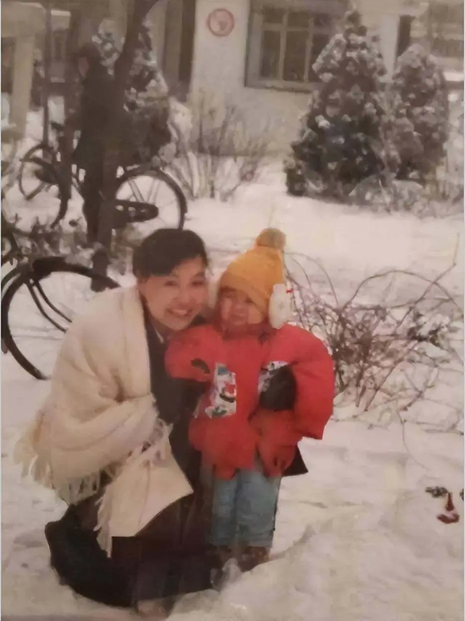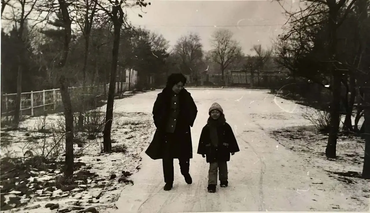 3. คุณยายและหลานชายกำลังมองดูกันอย่างสนิทสนมกันท่ามกลางหิมะ ดูจากเสื้อผ้าแล้ว ฐานะครอบครัวน่าจะดีมาก