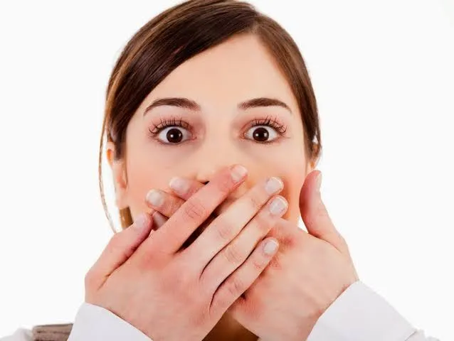 ⊹ กลั้นหายใจและยกมือขึ้นปิดปาก