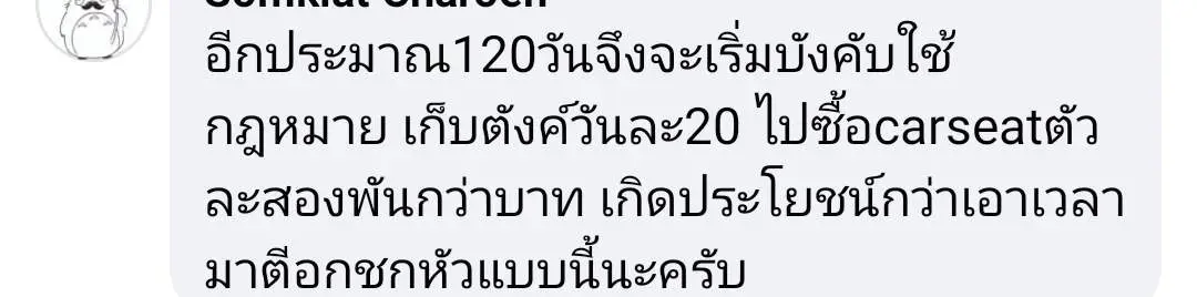 ต้องนั่ง "คาร์ซีท" และมีโทษปรับถึง 2,000 บาท เเต่โนโลกออนไลน์กลับมีการเเสดงความเห็นเชิงลบ กับการบังคับใช้กฎหมายข้อนี้ จนกลายเป็นดราม่า "คาร์ซีท" ว่า เป็นเรื่องของรายได้กับกฎหมายที่กำลังสวนทางกัน ทำให้คนออกมามองกฎหมายในเเง่ลบ