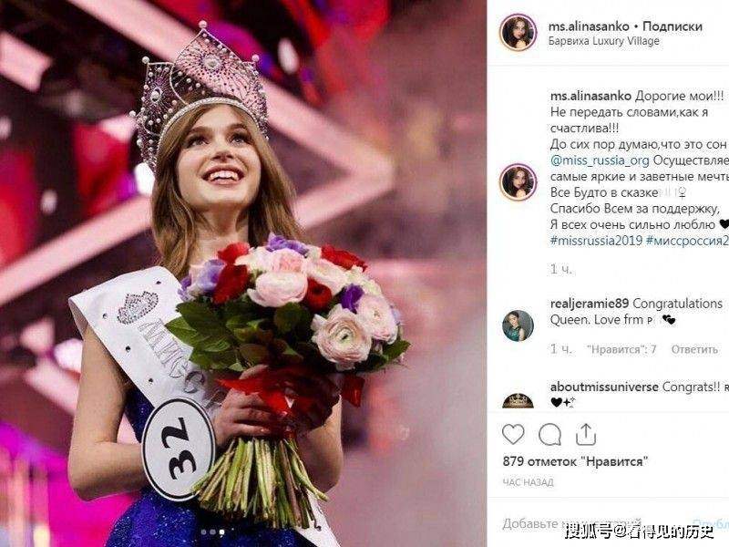 1. อลีนา ซังโกะ (Alina Sanko) อายุ 20 ปี ในปี 2019 เธอกลายเป็นผู้ชนะการประกวดนางงามรัสเซีย ในรอบสุดท้าย เธอเอาชนะคู่แข่งอีกหลายสิบคน ได้รับมงกุฎแพลตตินั่มมูลค่ากว่า 1 ล้านดอลลาร์และ 3 ล้านรูเบิล (500,000 ดอลลาร์)