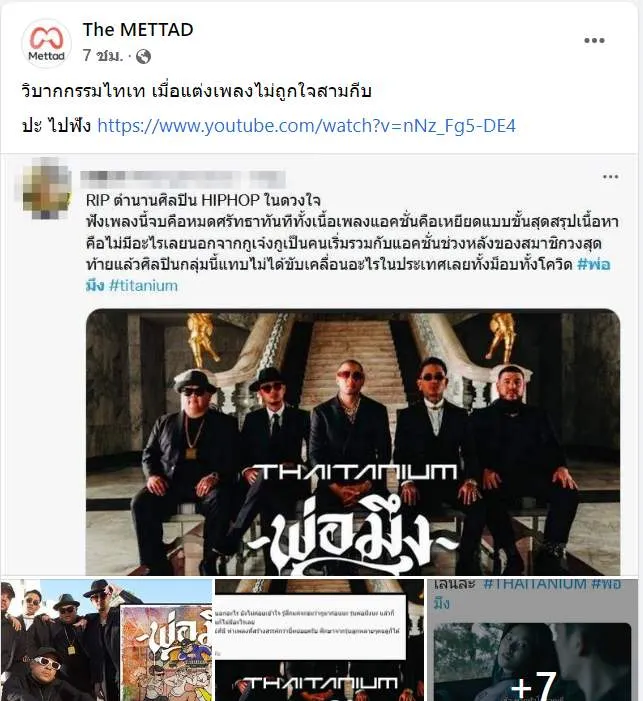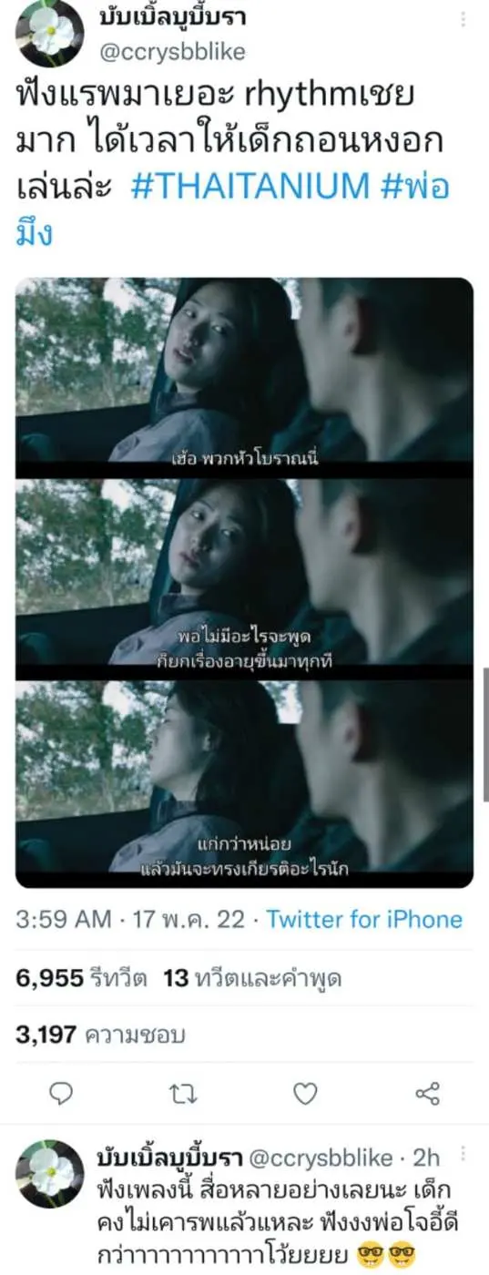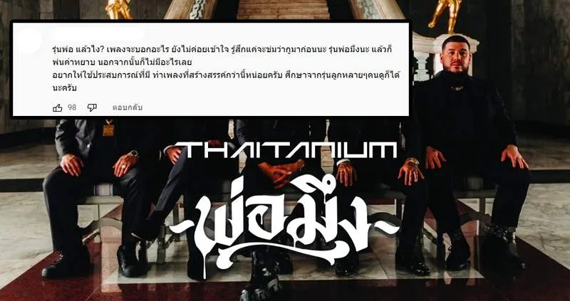 หลังมีแฮชแท็ก #พ่อมึง ขึ้นอันดับ 1 ในเทรนด์ทวิตเตอร์ไทย หลังจาก "ไทยเทเนียม" ได้ปล่อยผลงานใหม่ "พ่อมึง" โดยเนื้อหาเพลงมีการเขียน RHYME ที่มีเนื้อหาระบุว่า “ไม่ต้องถาม ใครสร้างมาตรฐานให้พวกมึงตาม” และยังมีการพูดถึงว่า ตัวเองเป็นรุ่นใหญ่ที่เป็นผู้บุกเบิกเส้นทาง