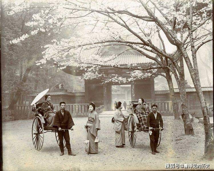 4. ในปี พ.ศ. 2450 ผู้ชม Cherry Blossom ในสวน Sheba โตเกียว นั่งรถลาก