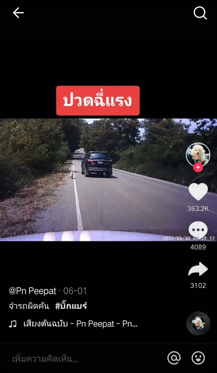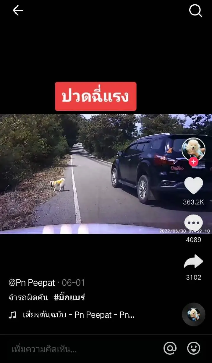 ผู้ใช้ TikTok@pnpeepat รายหนึ่งได้โพสต์คลิปขณะอยู่บนถนนและปล่อยหมาลงไปฉี่ หากสังเกตดี ๆ คือไม่มีการใส่สายจูงแต่อย่างใด และเมื่อฉี่เสร็จหมาตัวนี้ดันตกใจคิดว่าเจ้าของทิ้งไล่ตามรถแต่ผิดคันซะงั้น เพราะจริง ๆ เจ้าของยังไม่ได้ไปไหน