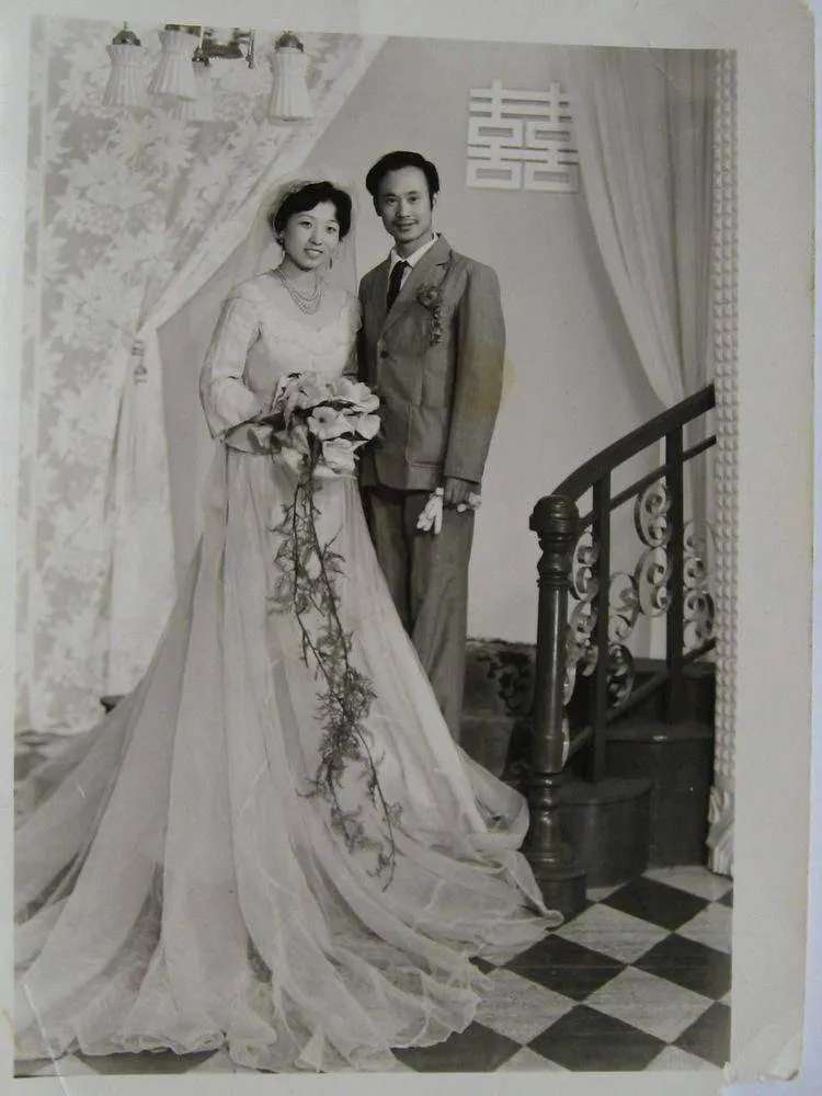 1. นี่เป็นภาพเก่าที่แชร์โดยชาวเน็ต ถ่ายในสาธารณรัฐจีน เธอบอกว่านี่เป็นรูปถ่ายงานแต่งงานของพ่อแม่ของคุณยายของเธอ ในภาพเจ้าสาวสวมชุดแต่งงานสีขาวกับผ้าโพกศีรษะที่สวยงามและเจ้าบ่าวสวมสูท หล่อ ทั้งสองถือดอกไม้