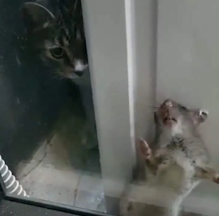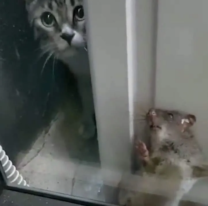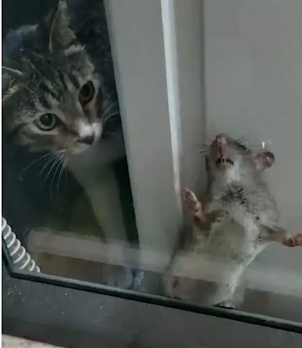 ในเรื่องทอมแอนด์เจอร์รี่ สังเกตุใหมว่าทุกครั้งที่เจ้าหนูเจอร์รี่จะหนีเจ้าทอมรอดนั้น ก่อต่อเมื่อมันมุดเข้ารูเล็กๆของมัน เจ้าหนูตัวนี้ก็คงจะเหมือนกัน สงใสมันคงจะก๊อปปี้ เจ้าหนูเจอร์รี่มาแน่ๆ เพราะมันวิ่งหนีแบบสุดชีวิตมาหลบในที่แคบๆ ที่หายใจหอบจนหนวดสั่นไปมา ในขณะที่น้องเหมียวก็พยายามมองหาอีกฝ่ายว่าซ่อนอยู่ตรงใหน พอรู้ว่าตัวเองทำอะไรไม่ได้ก็เลยถอยหลังเดินหนีออกไป งานนี้ทำเอาซะเจ้าหนูน้อยใจหายใจคว่ำไปหมด
