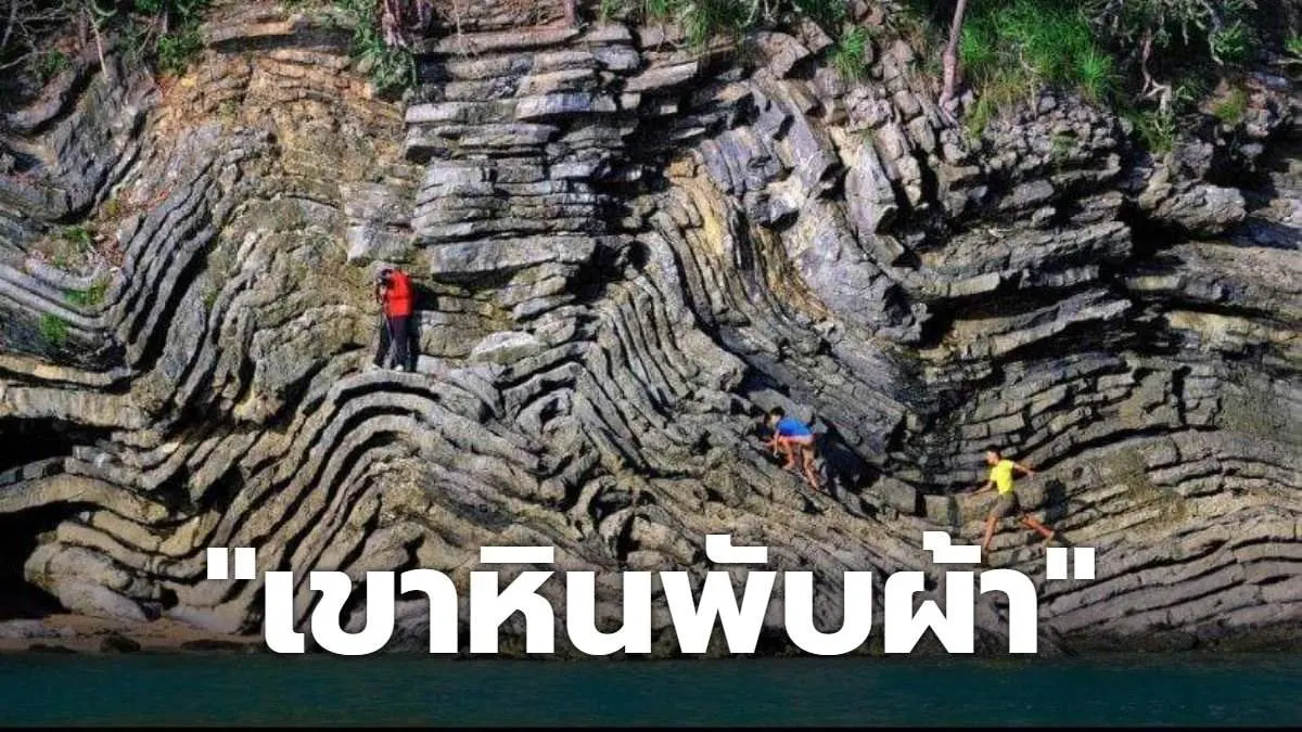 ซึ่งปรากฏการณ์ทางธรณีวิทยานี้ เกิดจากการตกตะกอนในท้องทะเล กลายเป็นชั้นหิน ต่อมาก็เกิดการเอียงและยกตัวของเปลือกโลก ทำให้ชั้นหินเกิดเป็นหน้าผาขึ้นมา จนได้กลายมาเป็น “เขาหินพับผ้า” ศิลปะกลางทะเลนั่นเอง