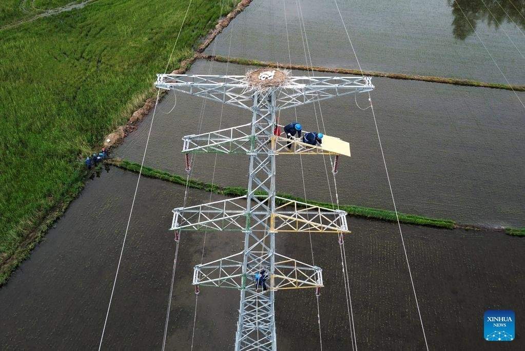 นกกระสาขาวทำรังกำลังกลายเป็นปัญหาหนึ่งของการไฟฟ้าจีน