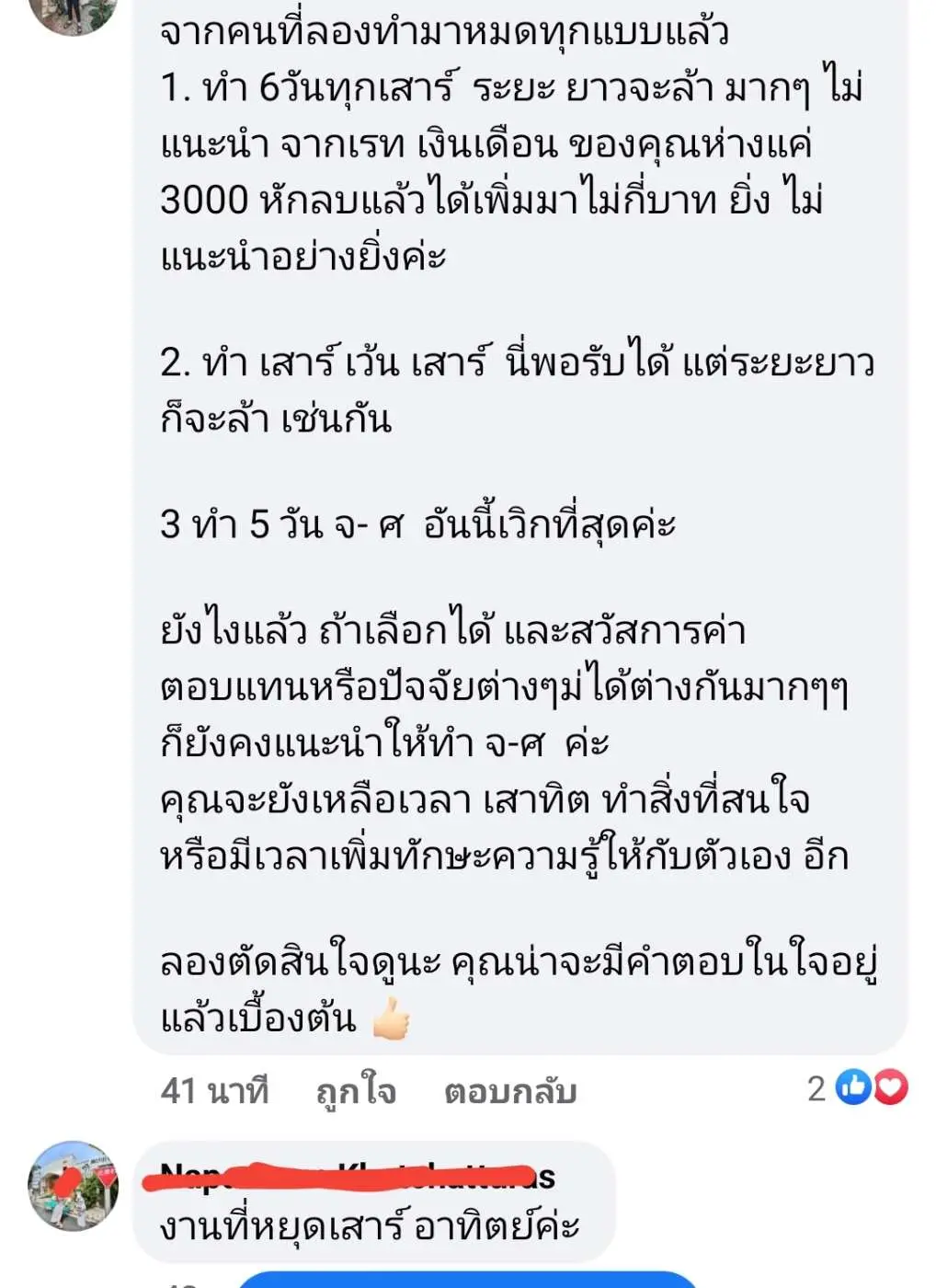 สาวคิดหนักเลือกทำงานที่ใหนดี!!ระหว่าง 15,000(จ-ศ)กับ18,000(จ-ส)