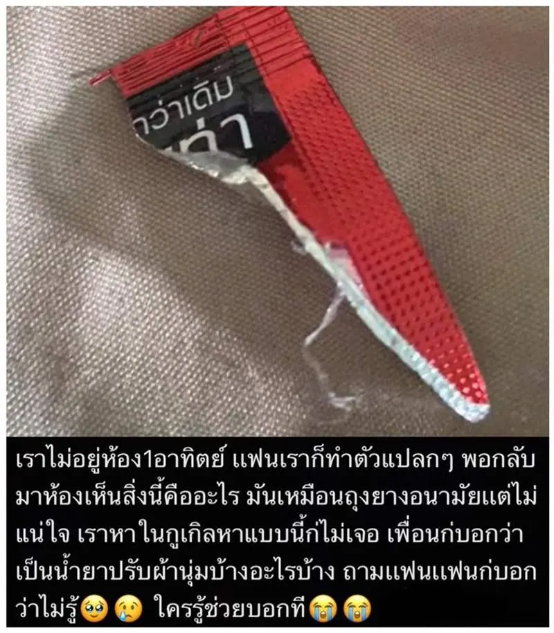 เพจเฟซบุ๊ก ผู้บริโภค ได้มีการแคปโพสต์ของสาวคนหนึ่งที่มาโพสต์ถามหลายคนว่า สิ่งนี้คืออะไรโดยบอกว่า "เราไม่อยู่ห้อง 1 อาทิตย์ แฟนเราก็ทำตัวแปลก ๆ พอกลับมาห้องเห็นสิ่งนี้คืออะไร มันเหมือนถุงยางอนามัยแต่ไม่แน่ใจ เราหาในกูเกิลหาแบบนี้ก็ไม่เจอ เพื่อนก็บอกว่าเป็นน้ำยาปรับผ้านุ่มบ้างอะไรบ้าง ถามแฟน แฟนก็บอกว่าไม่รู้ ใครรู้ช่วยบอกที"