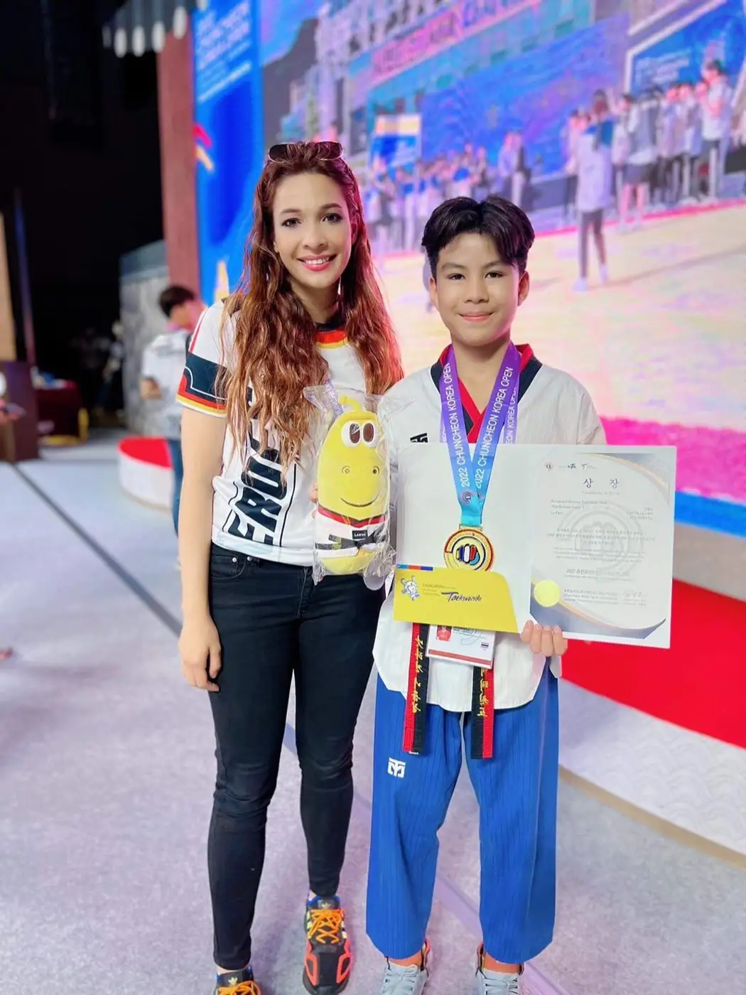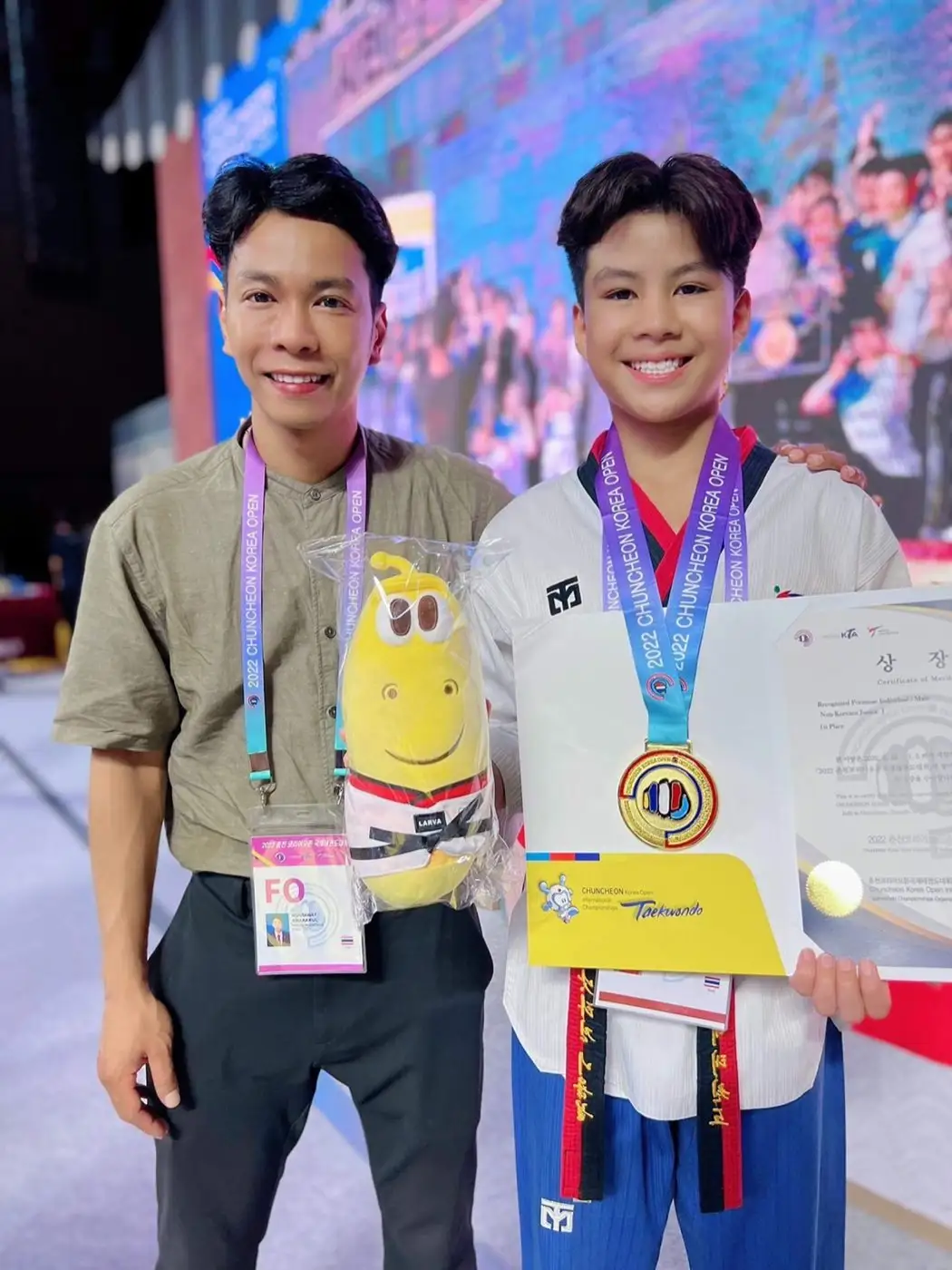 น้องเค้ก เด็กชายณัฎฐากร นิยมกูล เยาวชนดาวรุ่ง นักแสดง ช่อง9 MCOT HD30 ของค่ายมหามงคลฟิล์ม คว้ารางวัลชนะเลิศเหรียญทอง ในรุ่น INDIVIDUAL JUNIOR ในรายการแข่งขัน 2022 CHUNCHEONKOREA OPEN INTERNATIONAL TAEKWONDO CHAMPIONSHIPS โดย การนำทีมของผู้ฝึกสอน นายนนทวรรษ อะมะระกุล และ Miss Cassandra Haller ซึ่งรายการแข่งขันนี้มีนักกีฬาจากนานาชาติเข้าร่วมการแข่งขันเป็นจำนวนมาก นับเป็นรายการแข่งขันเทควันโด้ที่ใหญ่ที่สุดของประเทศเกาหลีใต้
