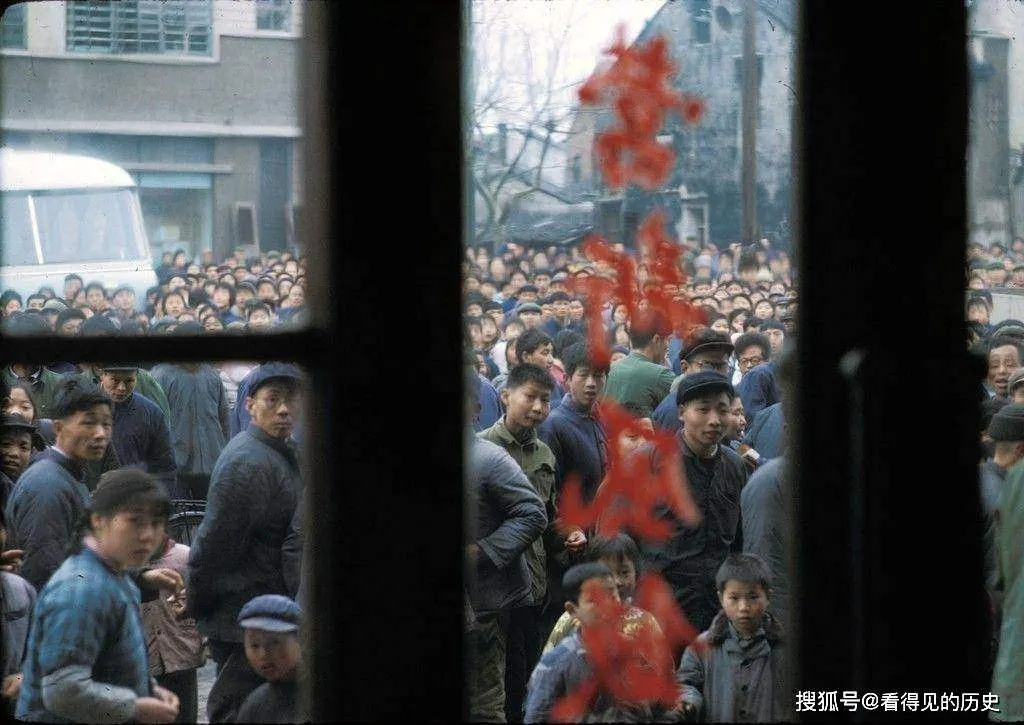 ภาพถ่ายเก่า ในปี 1972 แขกชาวอเมริกันเข้าไปในร้าน อาหาร ในเมืองอู๋ซี มณฑล เจียงซู ดึงดูดผู้คนจำนวนมาก