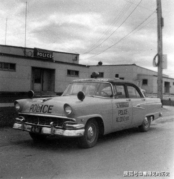 8. รถตำรวจจอดหน้าสถานีตำรวจโทรอนโตในปี 1956