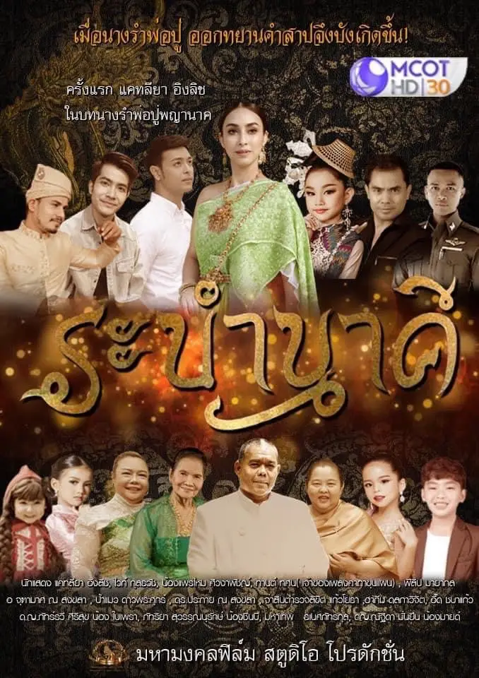 สำหรับละครเรื่องระบำนาคี บทประพันธ์โดย ดร.ซัน มหามงคลฟิล์ม สตูดิโอ โปรดักชั่น ซึ่งมีเรื่องย่อคือ เป็นเรื่องเล่าจากแม่ชีผู้ทรงศีลกับหนูน้อยที่เดินหลงทางเข้ามาในวัดด้านหลังกุฏิ ซึ่งรัตนาหญิงสาวหน้าสวย ผู้มาจำศีลหลังกุฏิ เทอคือ นางรำศาลพ่อปู่นาคี ผู้เคยขอพรพ่อปู่เพื่อให้แม่ หายป่วย เทอคือ นางรำที่พ่อปู่พญานาคหวงมาก