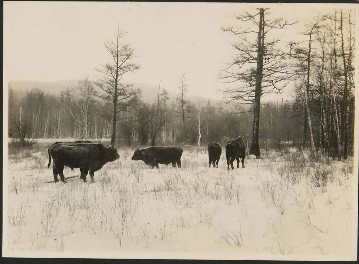 2. ในป่าของภูเขา Xing'an มีวัวหลายตัวกำลังเล็มหญ้าอยู่