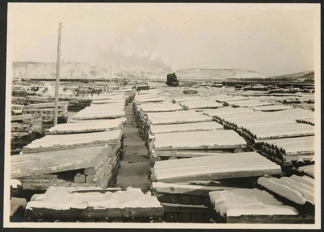 6. ลานไม้ของบริษัทญี่ปุ่น ในขณะนั้น มีชาวญี่ปุ่นจำนวนมากในภาคตะวันออกเฉียงเหนือที่ทำธุรกิจเกี่ยวกับไม้ ซึ่งบางแห่งมีขนาดค่อนข้างใหญ่ จากรูป โรงงานแปรรูปไม้ที่ช่างภาพถ่ายนั้นค่อนข้างใหญ่ มีไม้เรียงซ้อนกันเยอะมาก