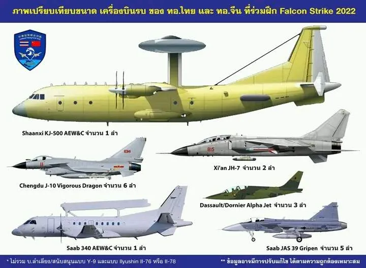 ไทยกับจีนจัดซ้อมรบร่วม "Falcon Strike 2022" ที่อุดรธานี ในวันที่ 14-24 สิงหาคม ภายใต้กิจกรรมการสนับสนุนทางอากาศและการโจมตีภาคพื้นดิน กองทัพอากาศจีนจะส่งเครื่องบินขับไล่ เรือพิฆาต และเครื่องบินเตือนภัยล่วงหน้ามาร่วม
