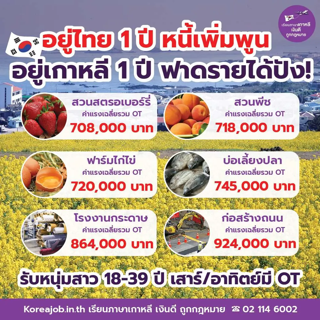 ผ่านไป 9 ปีเกาหลีค่าแรงขั้นต่ำพุ่งปรี๊ด สูงขึ้น 88% หันมองบ้านเราแล้วเป็นท้อ อนาคตเราเลือกเอง! อยู่ไทยไม่ไหวอย่าฝืน ไปเกาหลี 3 ปีมีเงินล้าน!!! มีสัญญาจ้าง สวัสดิการครบ ไม่ต้องหลบซ่อน ถูกกฎหมาย