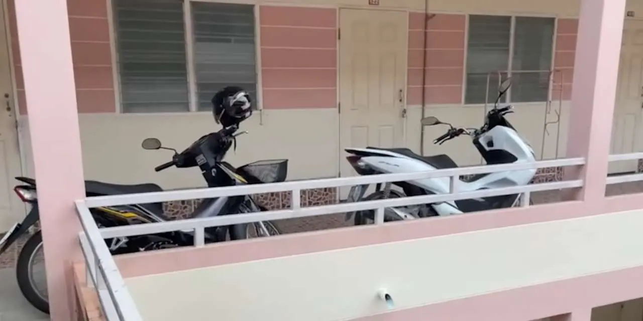 โจรขโมยรถเครื่องเยอะ...เจ้าของหอไอเดียดี เนื่องจากพื้นที่จำกัด สร้างทางขึ้น มอเตอร์ไซค์ให้ลูกค้าหอพัก เอาไปจอดในหัองตัวเองเลย...ปลอดภัยแน่นอน