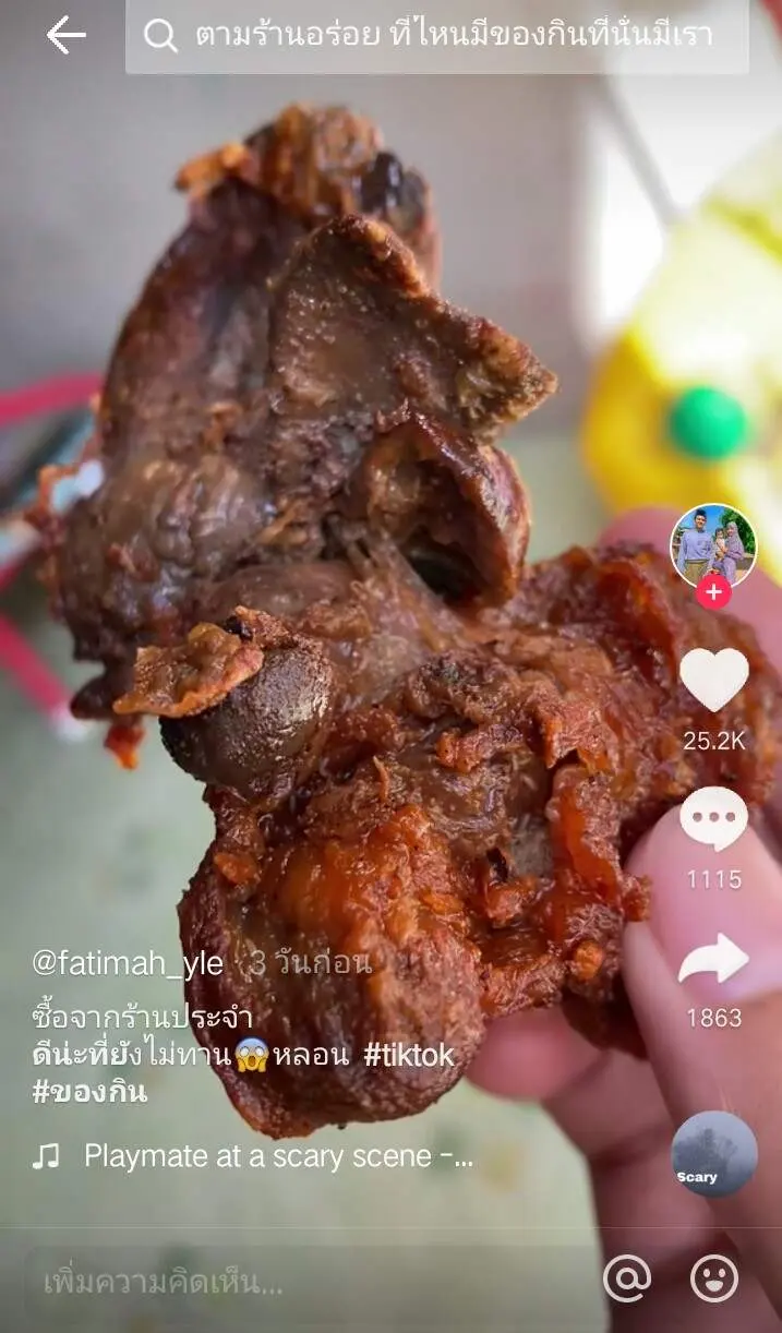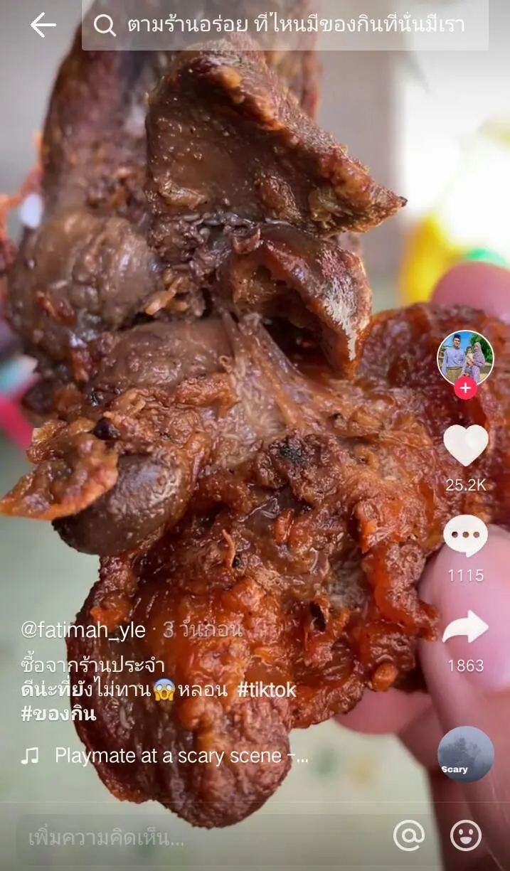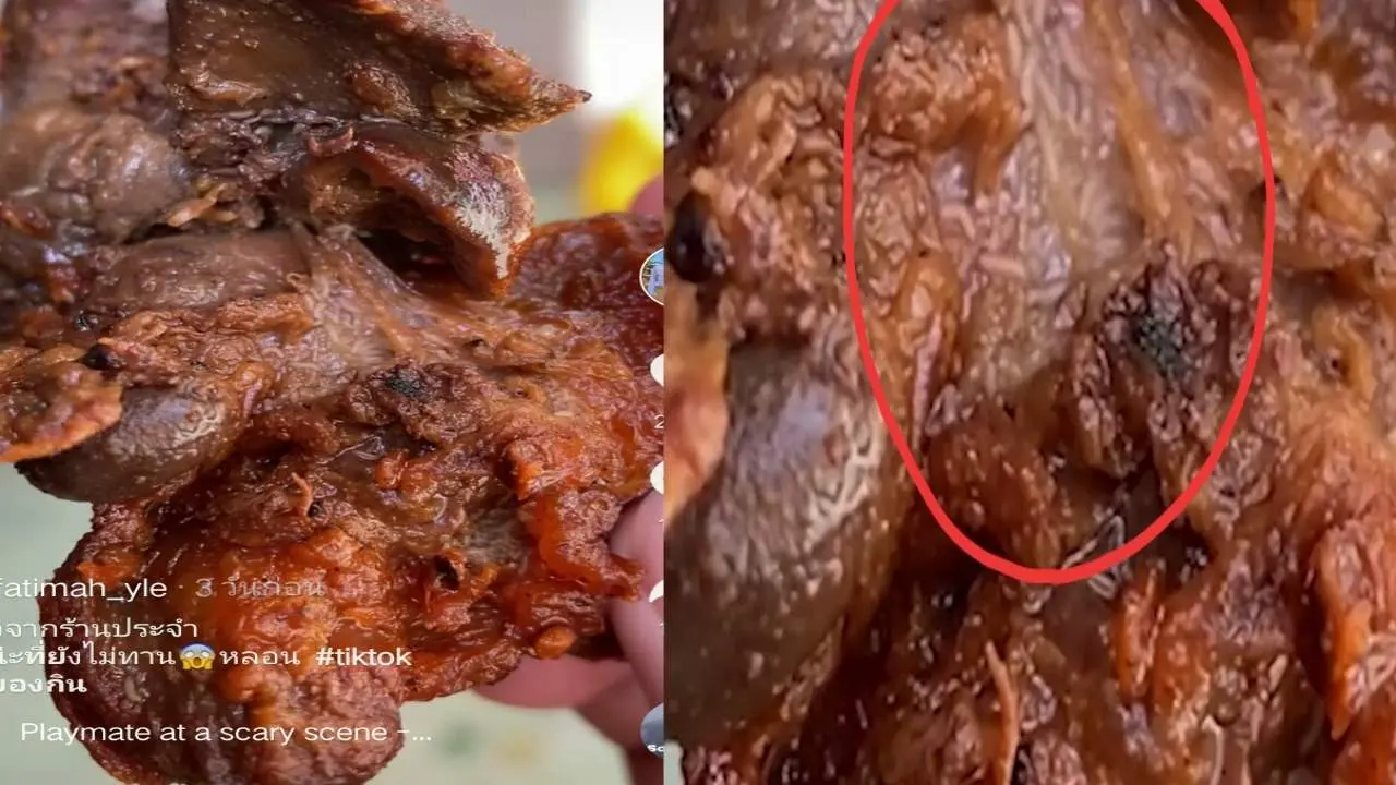 ผู้ใช้tiktok@fatimah_yleได้โพสต์แชร์เรื่องราวที่ตนเองนั้นได้ไปซื้อตับปิ้งร้านประจำของตัวเอง แต่ในขณะที่กำลังจะกินเกิดสังเกตุเห็นหนอนจำนวนมากเต็มตับปิ้งที่ตัวเองซื้อมาทั้งที่มันสุกแล้ว งานนี้เรียกได้ว่าโชคดีจริงๆที่สังเกตุเห็น ไม่งั้นได้โปรตีนไปเต็มๆ