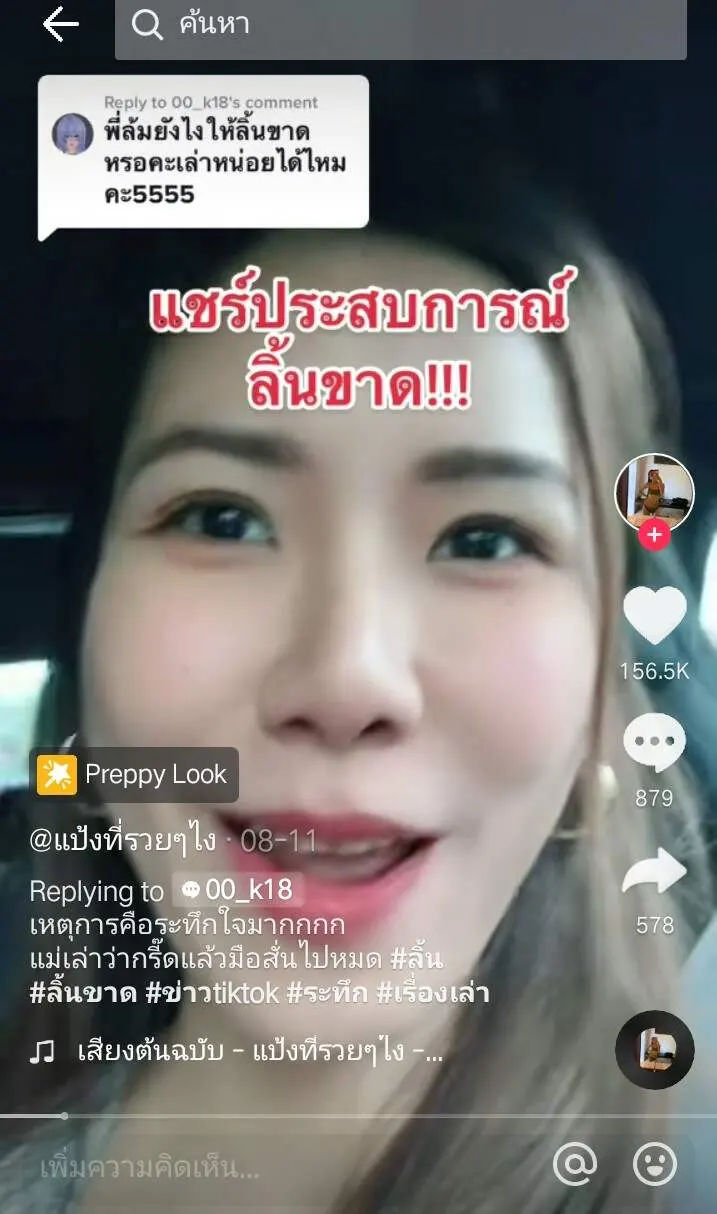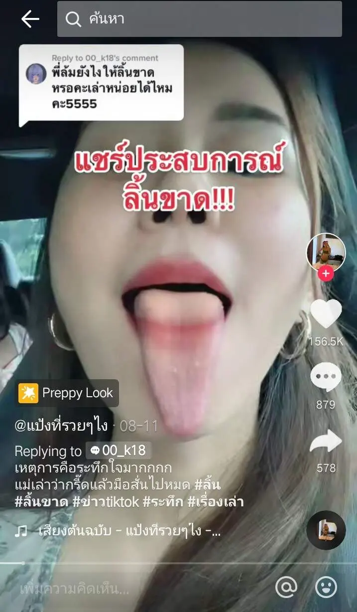ผู้ใช้tiktok@imrichgirlpangได้โพสต์แชร์ประสบการณ์ในวัยเด็ก ที่ตัวเองเกิดล้มและกัดลิ้นตัวเองจนขาด แต่โชคดีที่หมอนั้นได้ช่วยต่อคืนได้สำเร็จ แต่มันก็มีผลค้างเคียงคือลิ้นเธอนั้นยาวกว่าปกติ แต่มันก็ไม่มีปัญหาอะไรกับการใช้ชีวิตประจำวันของเธอแต่อย่างใด