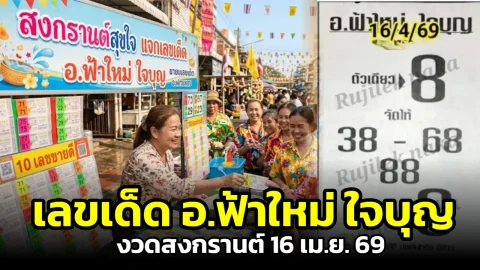เจาะเลขเด็ด"อ.ฟ้าใหม่ ใจบุญ" งวดสงกรานต์ลุ้นรวย 16 เม.ย. 69กระทู้อื่นๆในบอร์ด