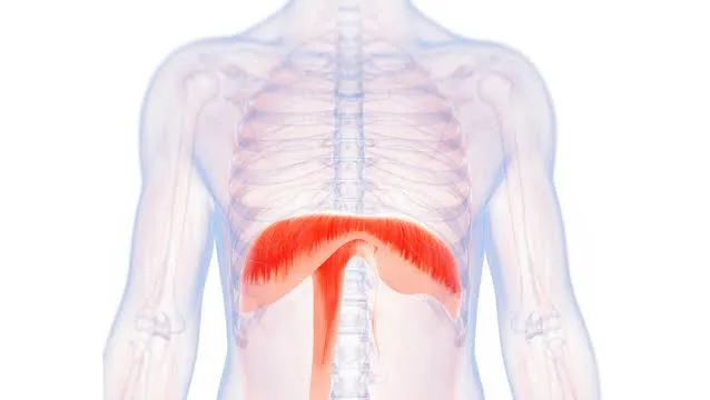 3.เกร็งกะบังลมขณะร้องเพลง. เพราะนี่จะทำให้เสียงของคุณแข็งแรงขึ้น (หากคุณไม่รู้ว่ากะบังลมคืออะไร ให้ดูที่ภาพประกอบ มันคือกล้ามเนื้อที่อยู่ข้างใต้กระดูกซี่โครง)