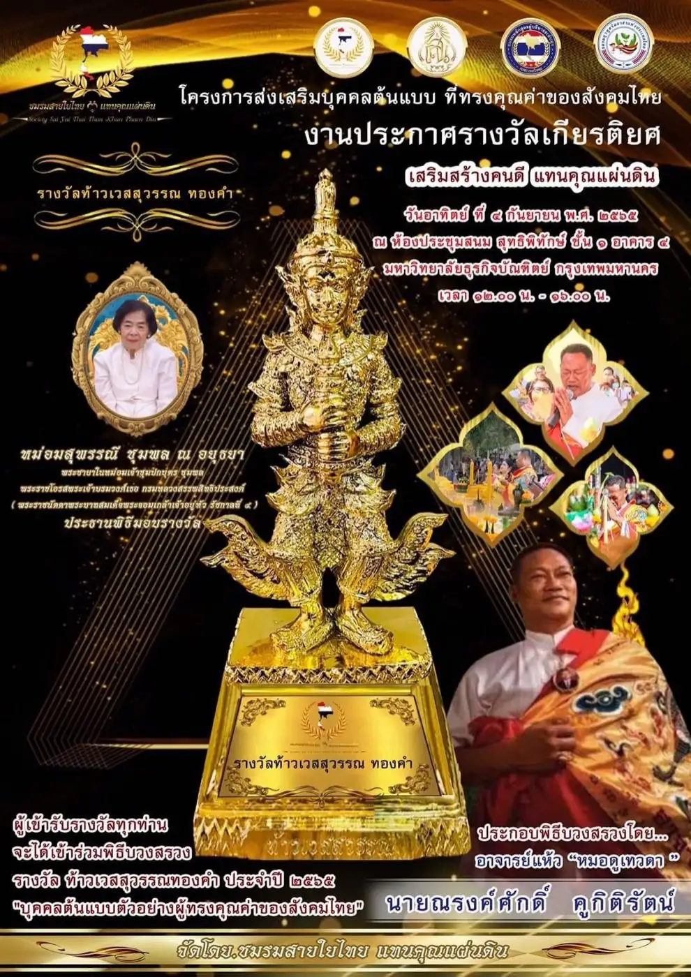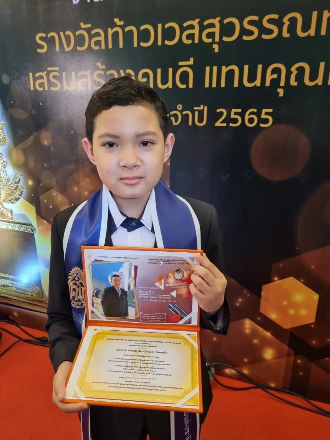 น้องเก้า เด็กชายปณชล วัฒนมงคล ได้เข้ารับรางวัล “ฑูตเยาวชนดีเด่น” ในโครงการส่งเสริมบุคคลต้นแบบที่ทรงคุณค่าสังคมไทย “
