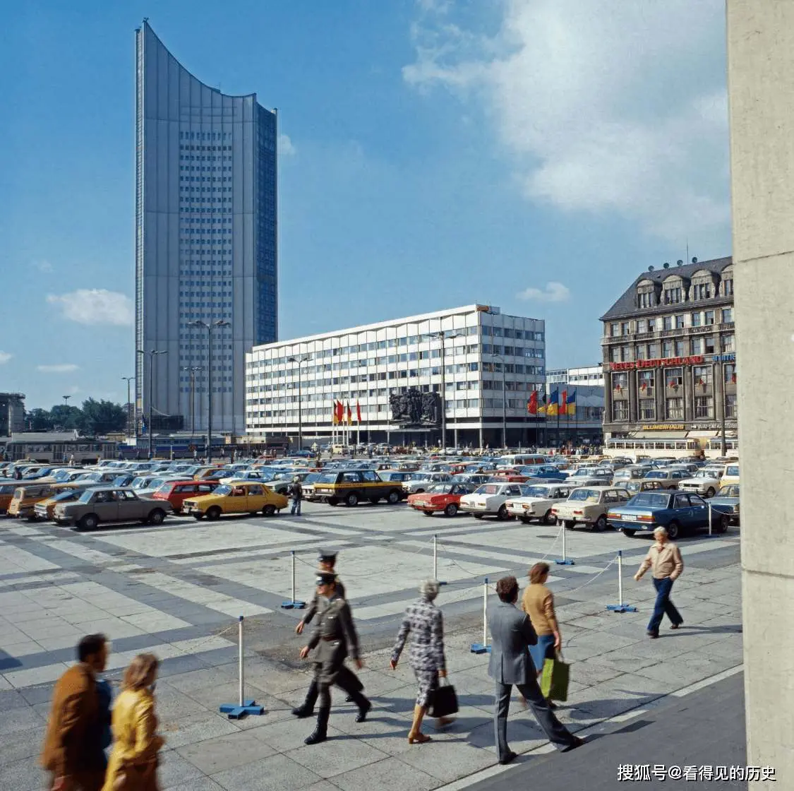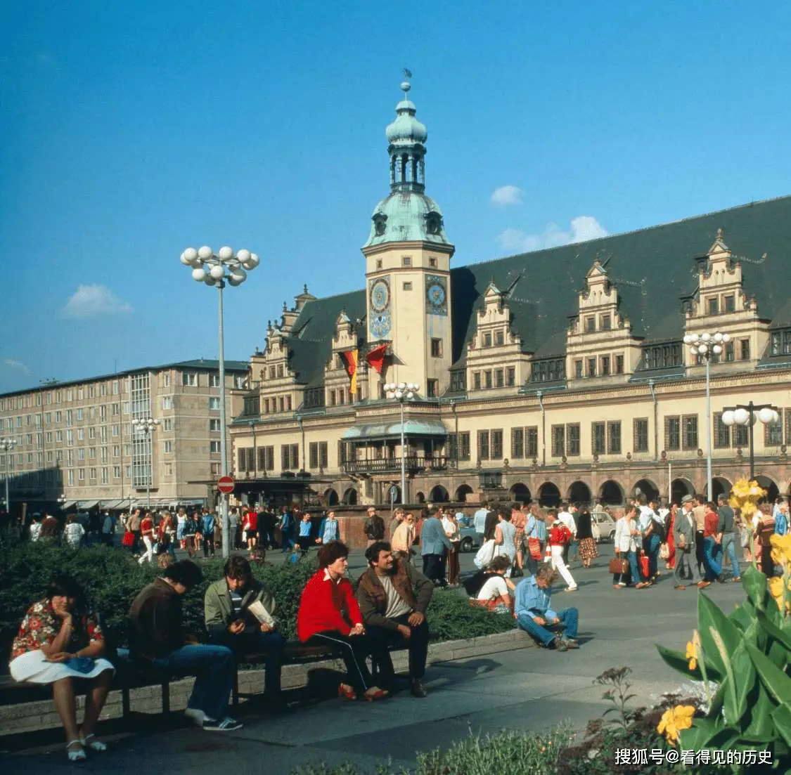 1. ในปี 1977 มีคนจำนวนมากนั่งอยู่หน้าศาลากลางเก่าของเมืองไลพ์ซิกในเยอรมนีตะวันออก ซึ่งมีชีวิตชีวามาก