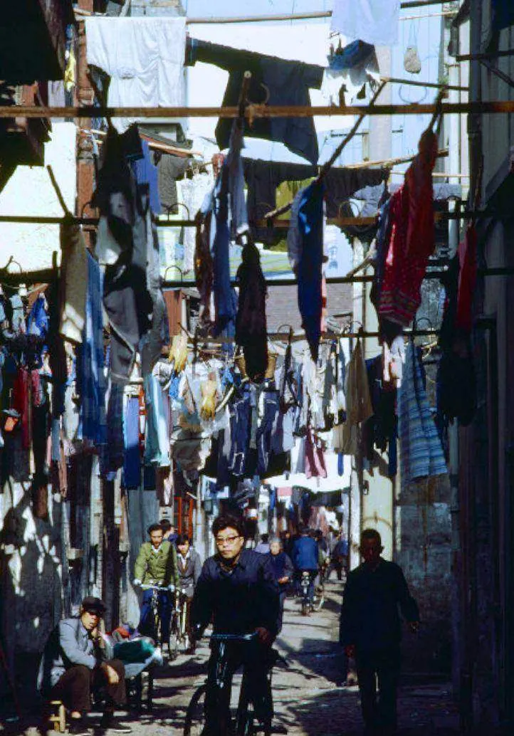 5. ในตรอกซอกซอยของเซี่ยงไฮ้ ทางเดินแคบๆ นั้นเต็มไปด้วยเสื้อผ้า และผู้คนก็เดินอยู่ใต้เสื้อผ้าราวกับว่าพวกเขาคุ้นเคยกับสิ่งเหล่านี้