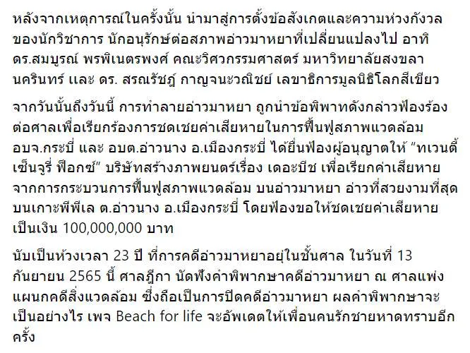 23 ปี ที่การคดีอ่าวมาหยาอยุ่ในชั้นศาล ในวันนี้( 13 กันยายน 2565 )นี้ ศาลฎีกา นัดฟังคำพิพากษาคดีอ่าวมาหยา ณ ศาลแพ่งแผนกคดีสิ่งแวดล้อม ติดตามเพิ่มเตอม เพจ Beach for life