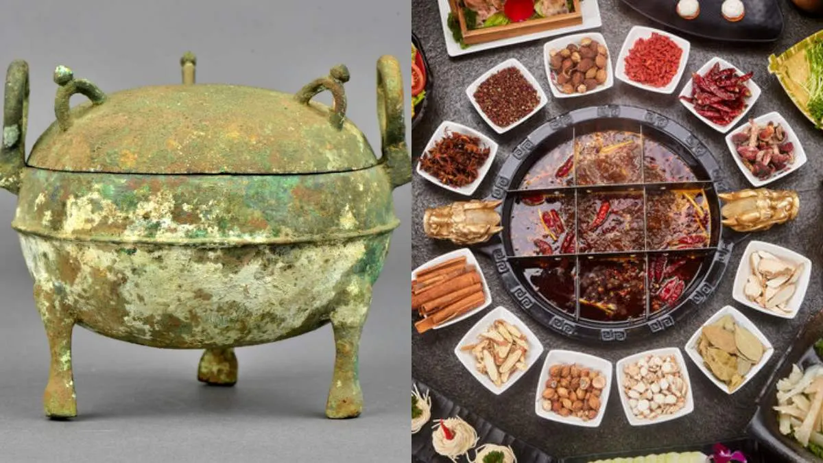 ซึ่งเชื่อว่า ถงติ่ง หรือภาชนะหม้อมีขาในสมัยนั้นเป็นต้นกำเนิดของหม้อไฟในปัจจุบัน และอีกที่มาหนึ่งเชื่อว่าหม้อไฟเริ่มปรากฎในสมัยฮั่นตะวันออก โดยเชื่อว่าวัตถุโบราณชื่อว่า 斗 (โต่ว) ที่ถูกขุดค้นพบคือหม้อไฟในสมัยนั้น