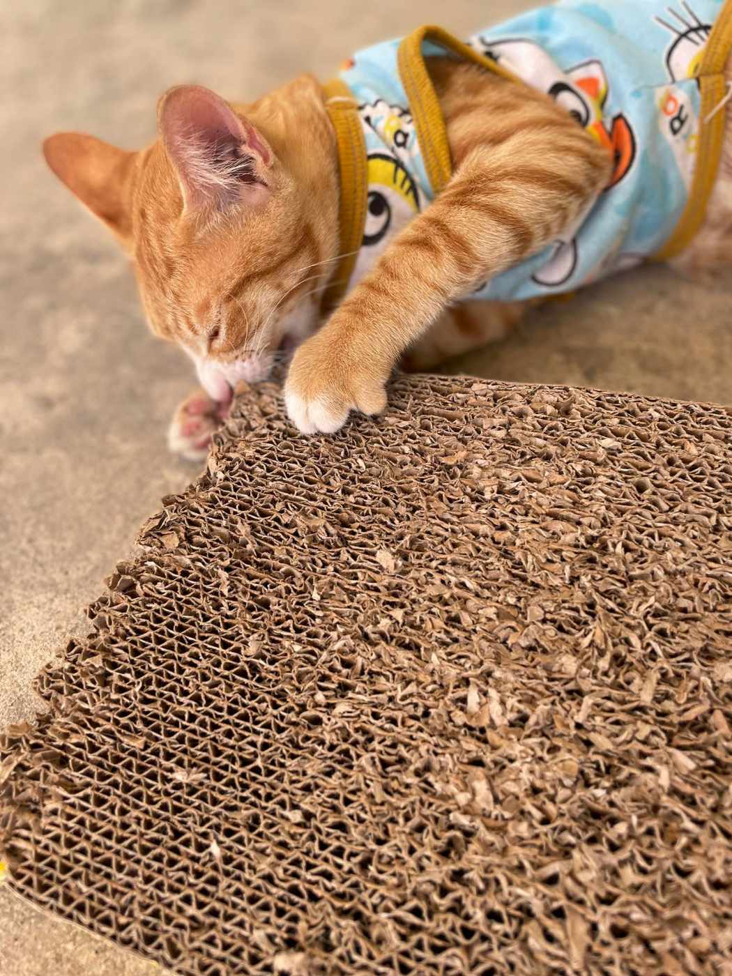 เมื่อผู้เขียนทราบถึงการอยากวางอาณาเขตของเจ้าพวกแมวเหมียวแล้ว ที่ลับเล็บ เลยกลายเป็นสิ่งที่ดูเหมือนจะจำเป็น ผู้เขียนจึงได้ไปสืบเสาะหาที่ลับเล็บมาให้เจ้าเหมียวได้ระบายอารมณ์ ซึ่งผู้เขียนได้ซื้อมาสองแบบ คือแบบที่ทำจากกระดาษลัง และแบบที่เป็นต้นเสาไม้น่ารักพันด้วยเชือก