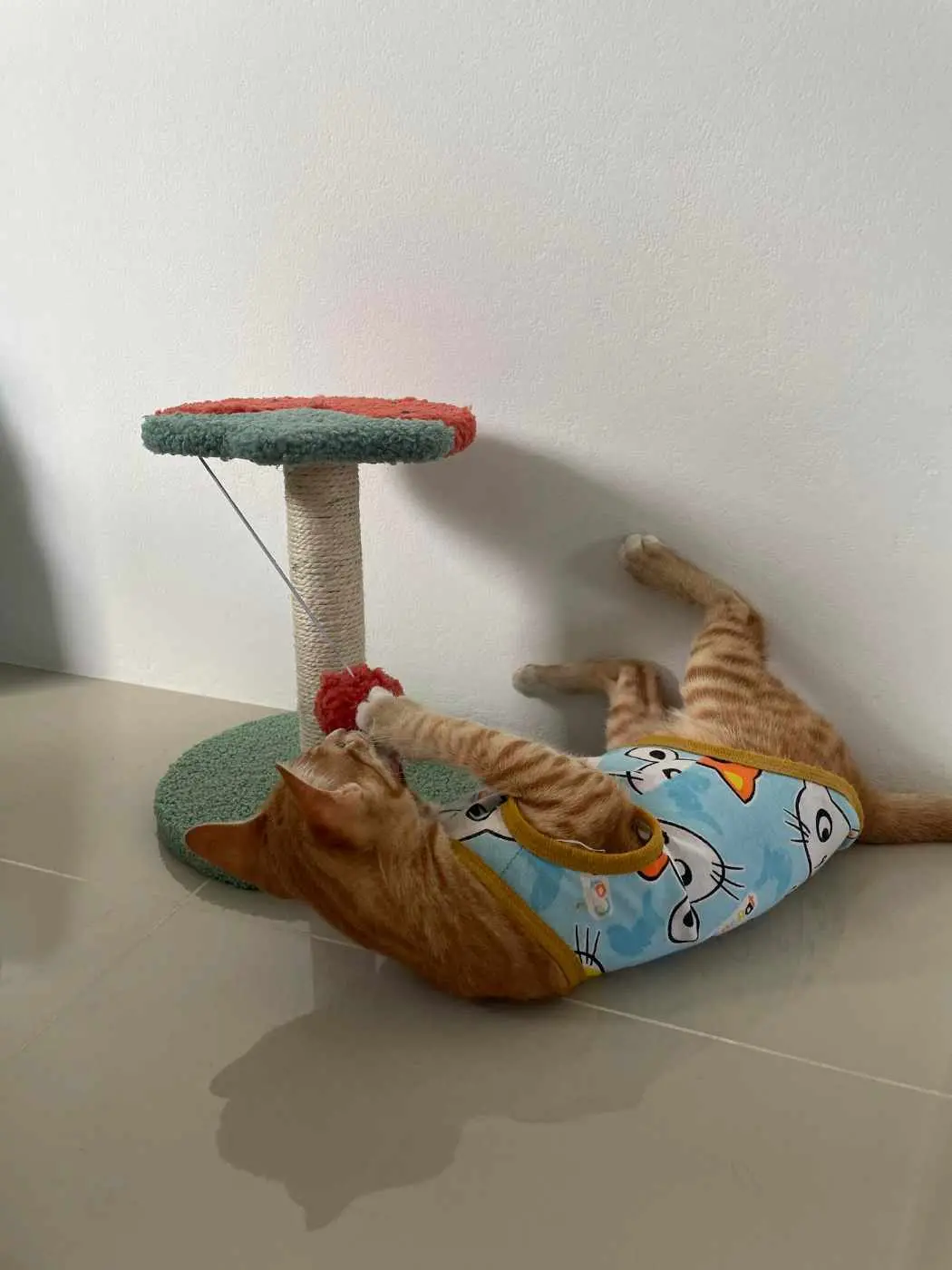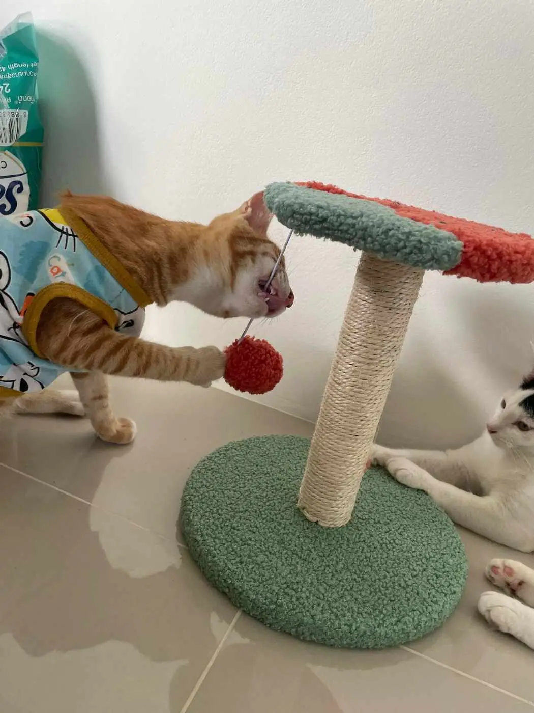คำตอบก็คือ เจ้าทอง และสาวเฉินชอบมาก ส่วนเจ้าไข่ต้มนั้นเฉยๆ นั่งมองเพื่อนเล่น ฮ่าฮ่า มาถึงตรงนี้ผู้เขียนก็รู้สึกสบายใจ อย่างน้อยๆ ซื้อมาให้ก็ยังได้ใช้งาน เพราะจากการสืบทราบจากผู้เลี้ยงแมวเหมียวหลายคน ได้บอกเป็นเสียงเดียวกันว่า แมวเป็นสัตว์ที่ประหลาด ซื้ออะไรให้ก็จะไม่ใช้ อย่างเช่นซื้อคอนโดแมวให้ แต่สรุปน้องแมวก็เลือกนอนในกระดาษลังอยู่ดี มันน่าเจ็บใจยิ่งนัก