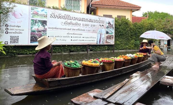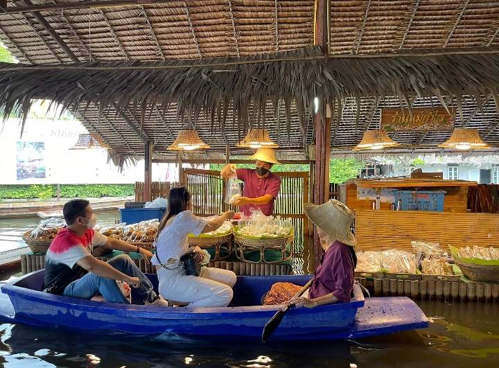 ทำเป็นตลาดน้ำไปเลยค่ะ มีการพายเรือ