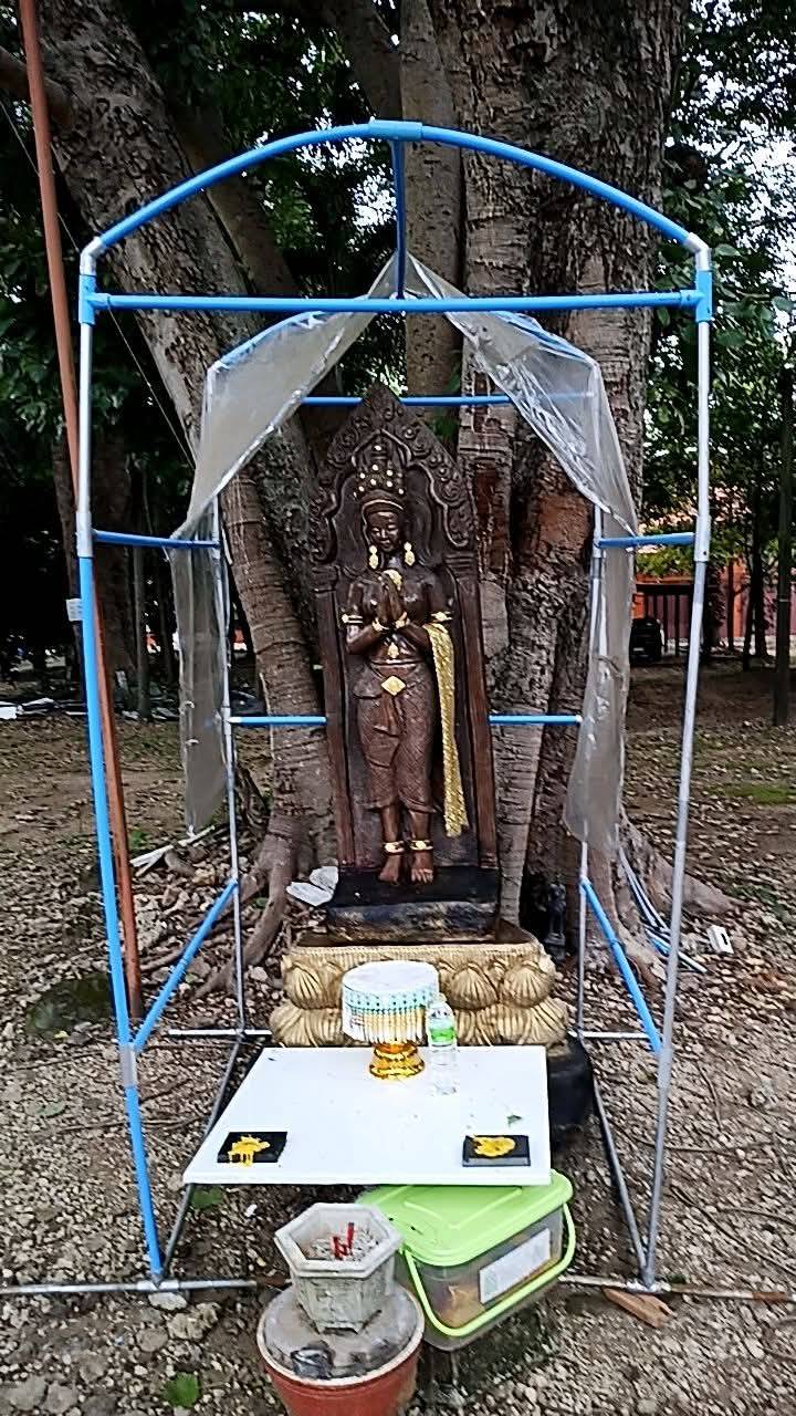 พระรูปฉลองพระองค์ พระนางสุขรมหาเทวี โดยปฏิมากรท้องถิ่น ณ บริเวณ วัดซับหินเพลิง ตำบลโคกสะอาด อำเภอศรีเทพ จังหวัดเพชรบูรณ์ ภาพโดย เฟซบุ๊ค เพจ วัดซับหินเพลิง ศรีเทพ เพชรบูรณ์ 30 สิงหาคม พุทธศักราช 2568