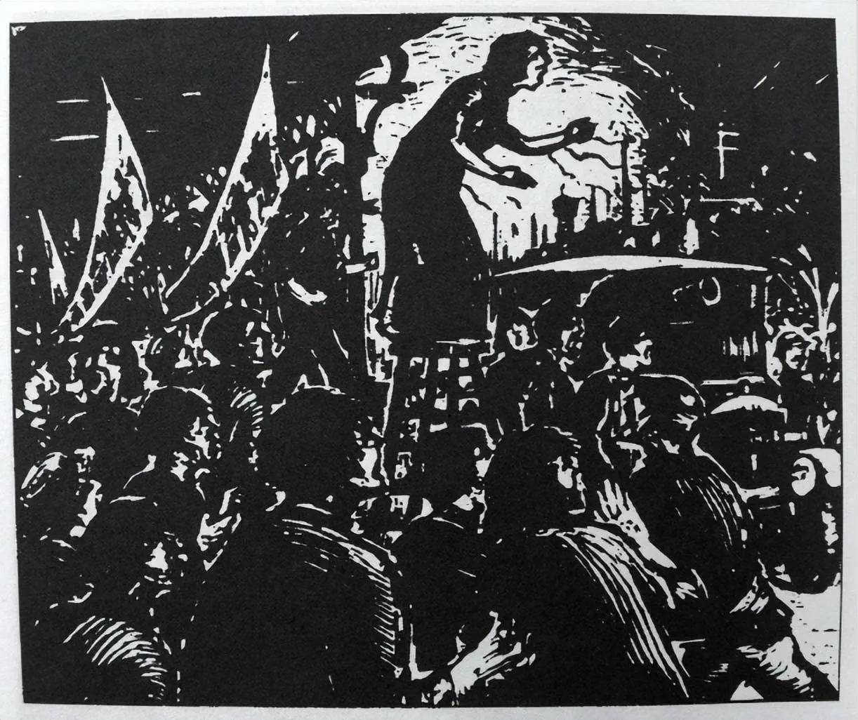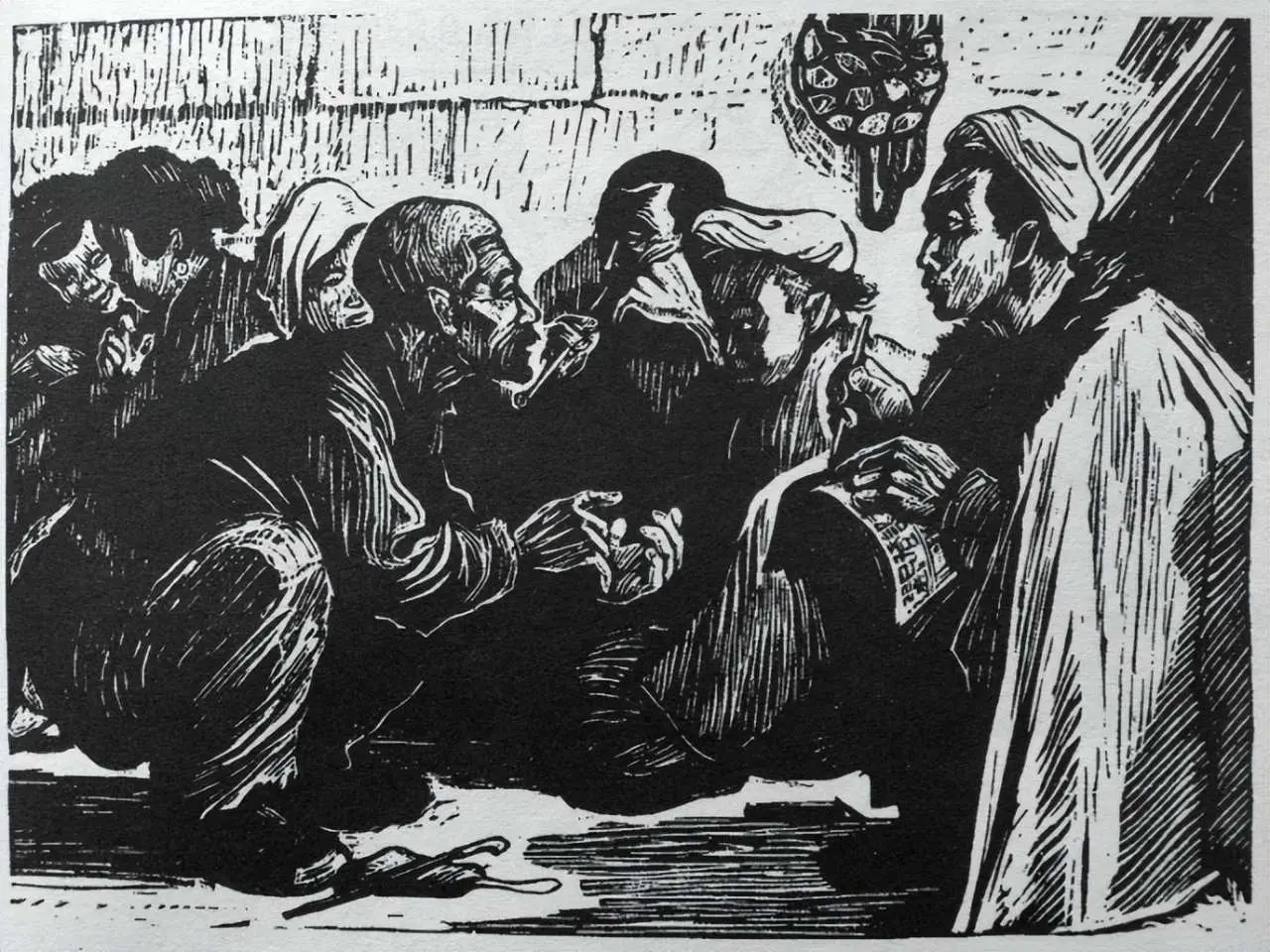 1. รูปภาพแสดงการแกะสลักแม่พิมพ์ "การลงทะเบียนผู้มีสิทธิเลือกตั้งในพื้นที่ฐานต่อต้านญี่ปุ่น" การแกะสลักนี้สะท้อนให้เห็นว่าในช่วงสงครามต่อต้านการรุกรานของญี่ปุ่น ประชาชนทั่วไปในเขตชายแดนกำลังดำเนินการเลือกตั้งด้วยความกระตือรือร้นอย่างมาก พวกเขาอภิปรายอย่างดุเดือดในขณะที่ลงทะเบียนผู้มีสิทธิเลือกตั้งอย่างจริงจัง