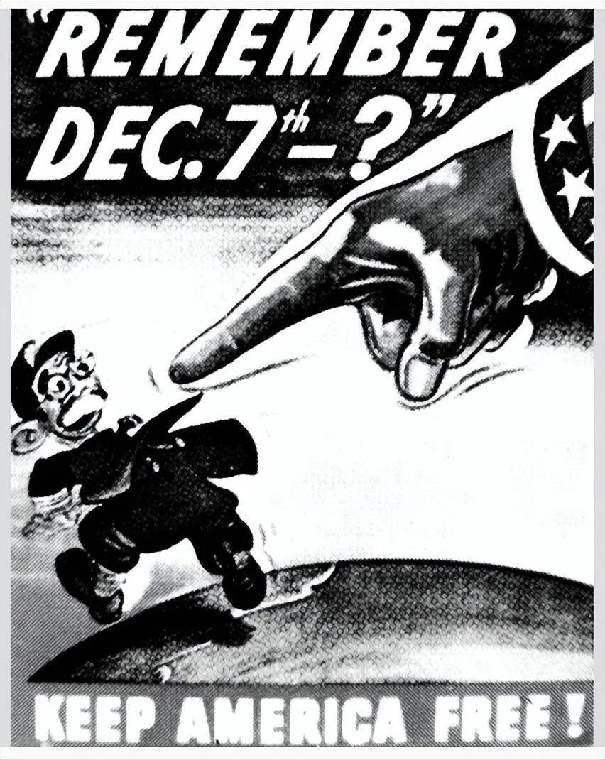 5. ภาพเก่านี้เป็นการ์ตูนต่อต้านญี่ปุ่นที่ตีพิมพ์ในสหรัฐอเมริกา ตีพิมพ์ในเดือนกุมภาพันธ์ พ.ศ. 2484 การ์ตูนอ่านว่า "จำวันที่ 7 ธันวาคม พ.ศ. 2484" เป็นภาษาอังกฤษ ใครก็ตามที่คุ้นเคยกับประวัติศาสตร์จะรู้ว่านี่คือวันที่ญี่ปุ่นโจมตีเพิร์ลฮาร์เบอร์ ภาพถ่ายแสดงนิ้วโป้งชี้ไปที่คนที่กำลังหลบหนีจากญี่ปุ่นอย่างโกรธจัด ภาพถ่ายสะท้อนความมุ่งมั่นของชาวอเมริกันในสั่งสอนญี่ปุ่นในขณะนั้น